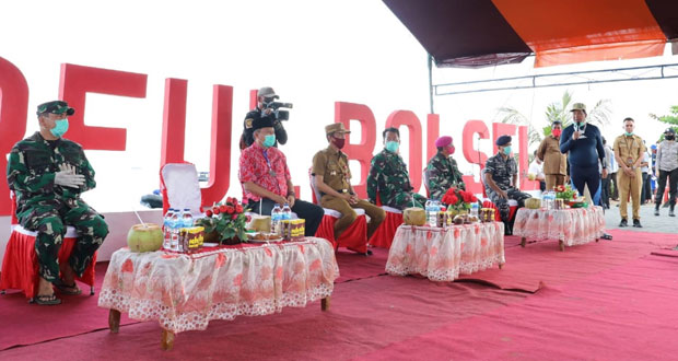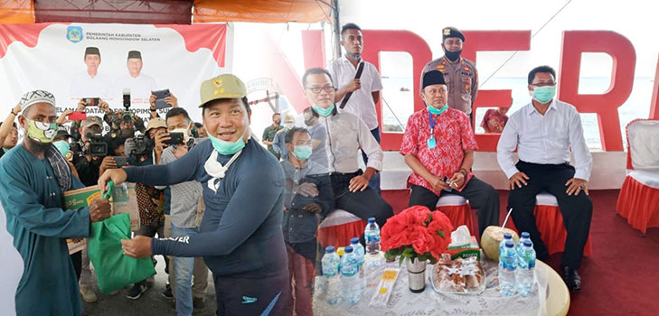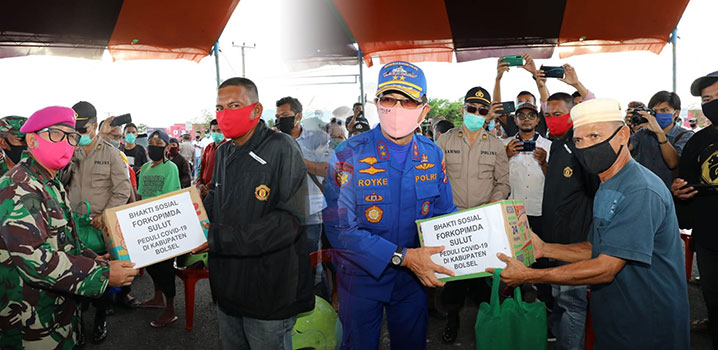 BiPoin, Bolsel – Bupati Kabupaten Bolaang Mongondow Selatan (Bolsel) Hi. Iskandar Kamaru, S.Pt, menerima kunjungan Bakti Sosial Forkopimda Sulawesi Utara (Sulut) dalam rangka menyongsong Bulan Suci Ramadhan dan peduli masyarakat pesisir yang terdampak Covid-19 di Bolsel. Senin (20/04/20).