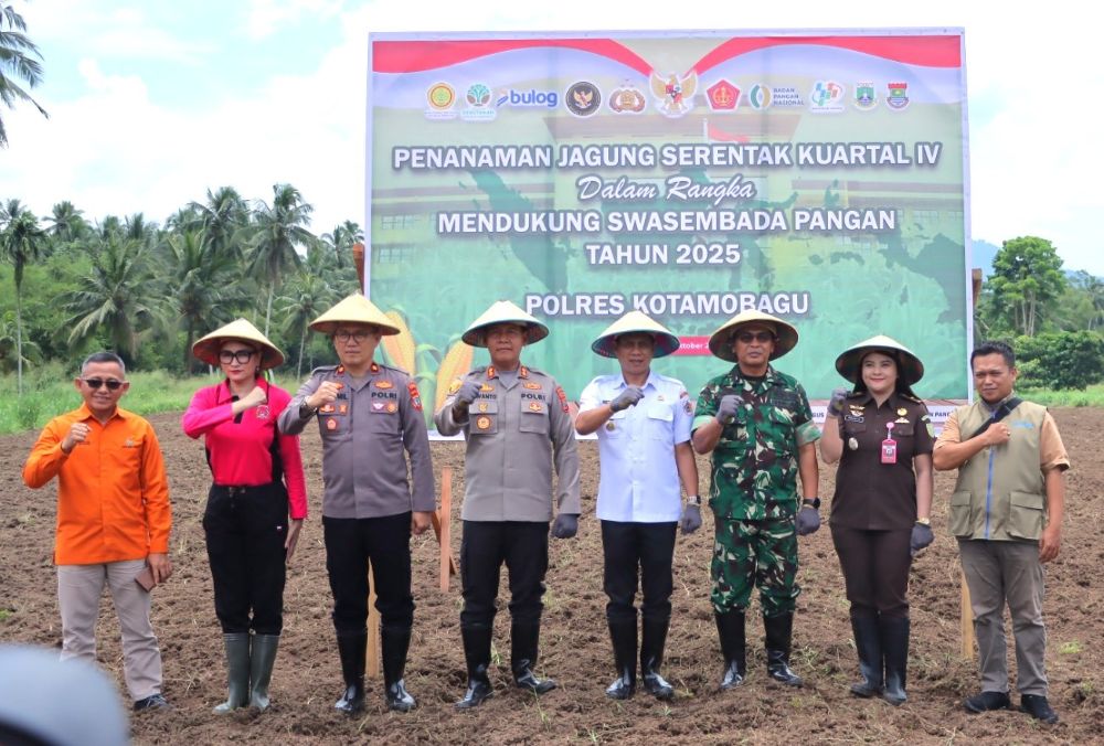 BiPoin, Kotamobagu – Dalam upaya mendukung program Swasembada Pangan Nasional Tahun 2025, Polres Kotamobagu menggelar kegiatan Penanaman Jagung Serentak Kuartal IV, berlokasi di Desa Bungko, Kecamatan Kotamobagu Selatan, Kota Kotamobagu, pada Rabu (08/10/2025).